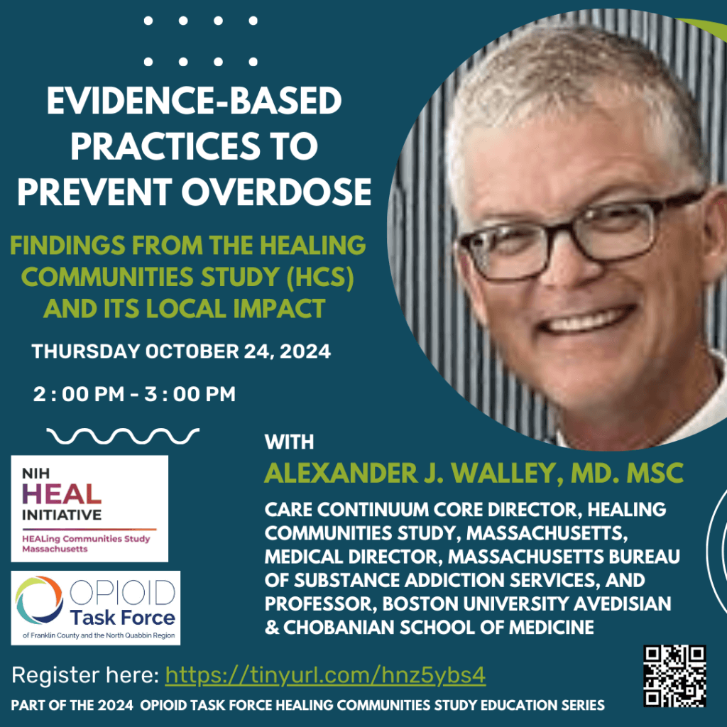 Please join us on Thursday, October 24, 2024, at 2 PM as we focus on “Evidence-based Practices to Prevent Overdose: National Findings from the HEALing Communities Study and Its Local Impact.” One can register for this free, virtual event, here.