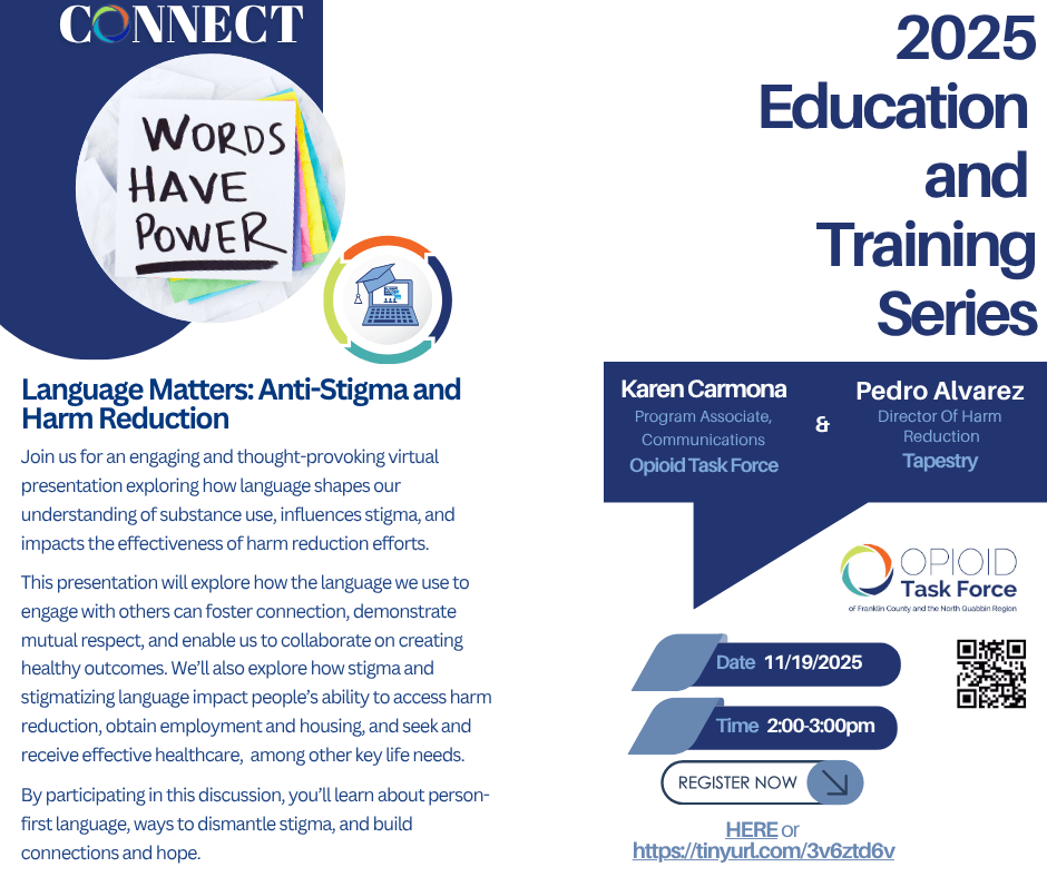 This is part of the CONNECT 2025-2026 Education and Training Series. If you have questions or need more information, please contact Nicole St. Hilaire, Outreach Manager for CONNECT, at nicole@opioidtaskforce.org.