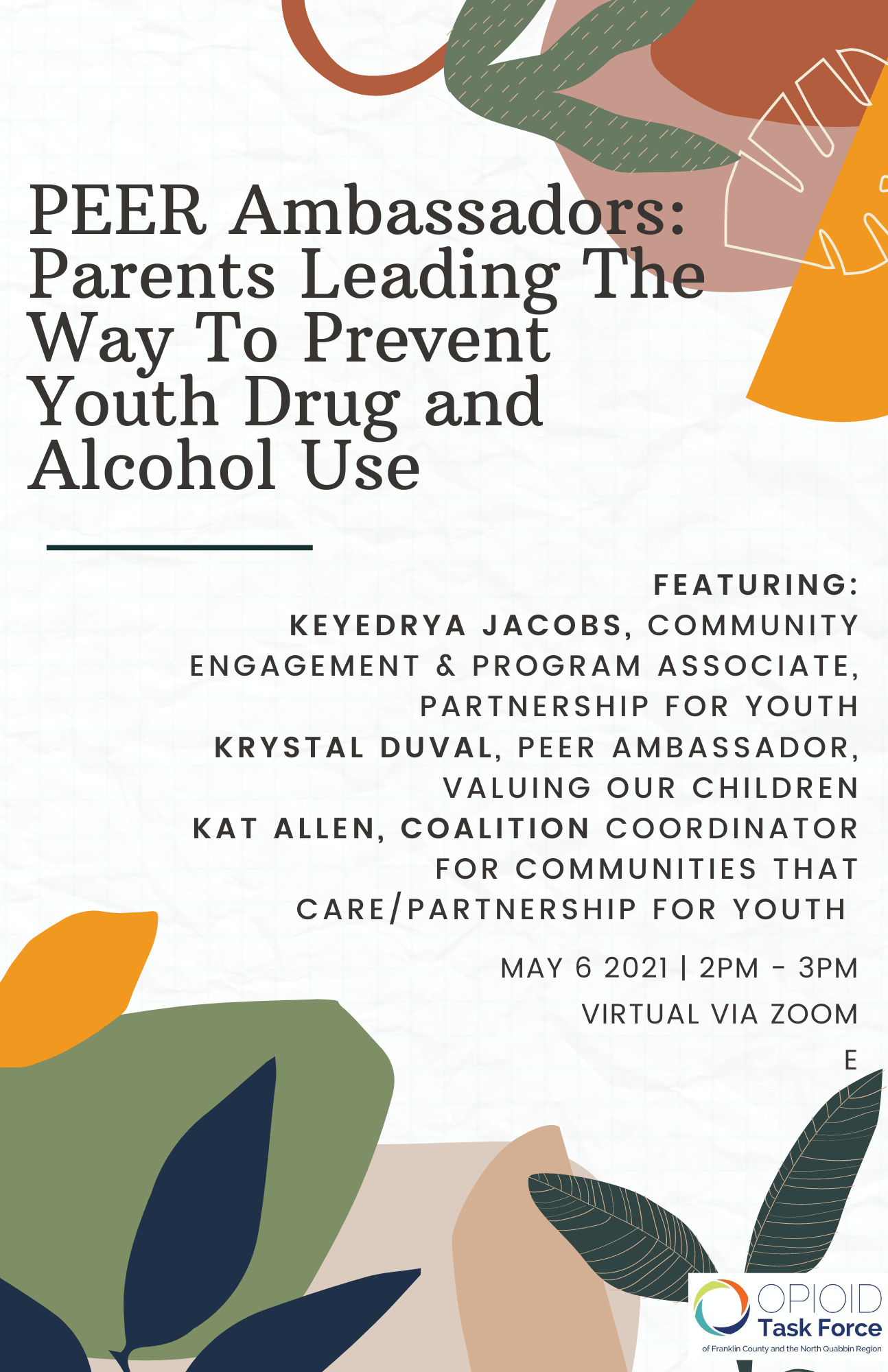 Join Keyedrya Jacobs, Community Engagement & Program Associate at the Partnership for Youth, Krystal Duval, PEER Ambassador, Valuing Our Children, and Kat Allen, Coalition Coordinator for Communities That Care/Partnership for Youth as they discuss the PEER Ambassador Program.PEER Ambassadors center the voices of parents to harness their power to help prevent youth substance misuse in our rural region.