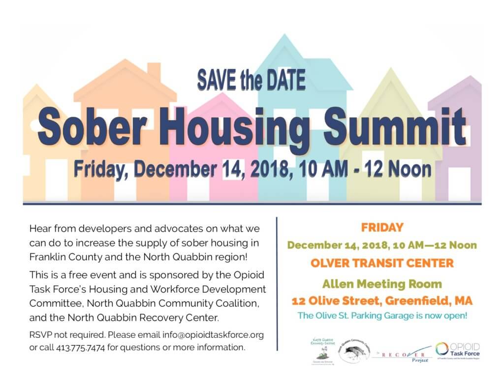 This is a free event open to all community members and is sponsored by the Opioid Task Force’s Housing and Workforce Development Committee, the North Quabbin Community Coalition, and the North Quabbin Recovery Center. RSVP not required. Please email info@opioidtaskforce.org or call 413.775.7474 for questions or more information.